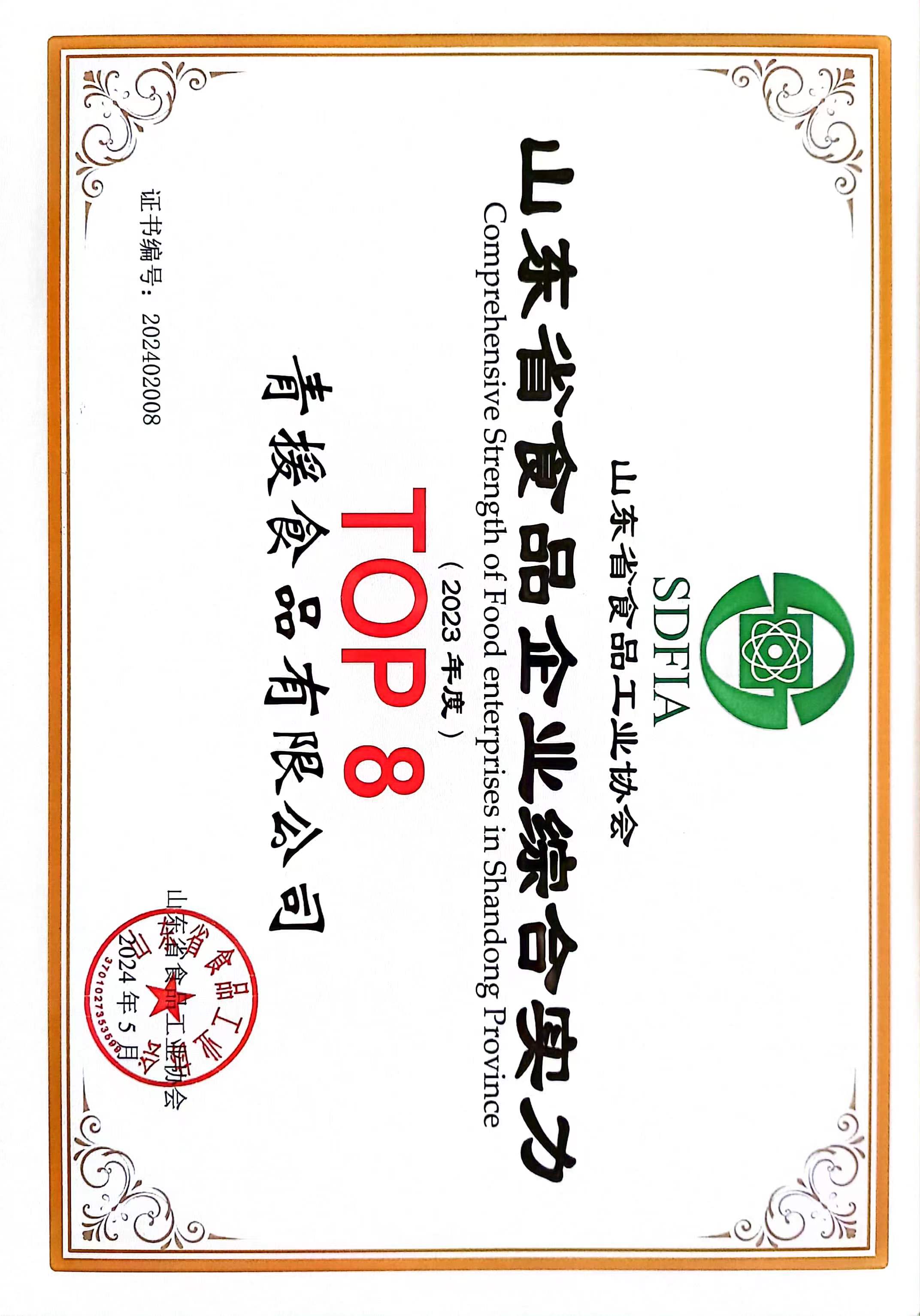 會上,對獲得2023年度山東省食品工業(yè)協(xié)會科學(xué)技術(shù)獎(jiǎng)、協(xié)會優(yōu)秀單位、優(yōu)秀工作者、白酒(食品)企業(yè)綜合實(shí)力水平評價(jià)榜單上榜企業(yè)以及山東省第七屆葡萄酒果酒國家評委進(jìn)行表彰。青援食品有限公司憑借企業(yè)強(qiáng)大的綜合實(shí)力、行業(yè)內(nèi)的重要影響力和良好的市場口碑被評為2023年度“山東省食品企業(yè)綜合實(shí)力TOP8”,公司開展的雙重發(fā)酵制備改性麥麩并協(xié)同菊粉制作高膳食纖維營養(yǎng)餅的研究項(xiàng)目榮獲“山東省食品工業(yè)協(xié)會科學(xué)技術(shù)二等獎(jiǎng)”,公司副總裁桑振亮同志被授予“山東省食品工業(yè)科技創(chuàng)新領(lǐng)軍人物稱號”。